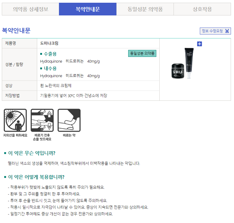 1주 사용만으로도 사진처럼 효과가 보인다면 우리 한번 사용해 보자. 처음엔 혹시 모르니 대량 구입은 하지 말고 하나 정도 구입해 사용해 보길 권한다. 나는 지금은 약국에서 하나씩 구입한다. 좀 어두운 부위에는 다 바른다. 누굴 위해서가 아닌 내 자신감을 위해 매일매일 투자한다. 추가 리뷰 사용 3개월째 요즘 보습에도 큰 도움이 된다. 꼭 써보길 귄한다. 홈쇼핑에서는 도미나스로 4세대 시리즈로 대용량으로 구입가능하다. 태극제약으로 제조사가 동일하다. 도미나크림 보다 발림성이 좋고 아침 저녁으로 사용해보면 지금 이 계절에 아주 좋다