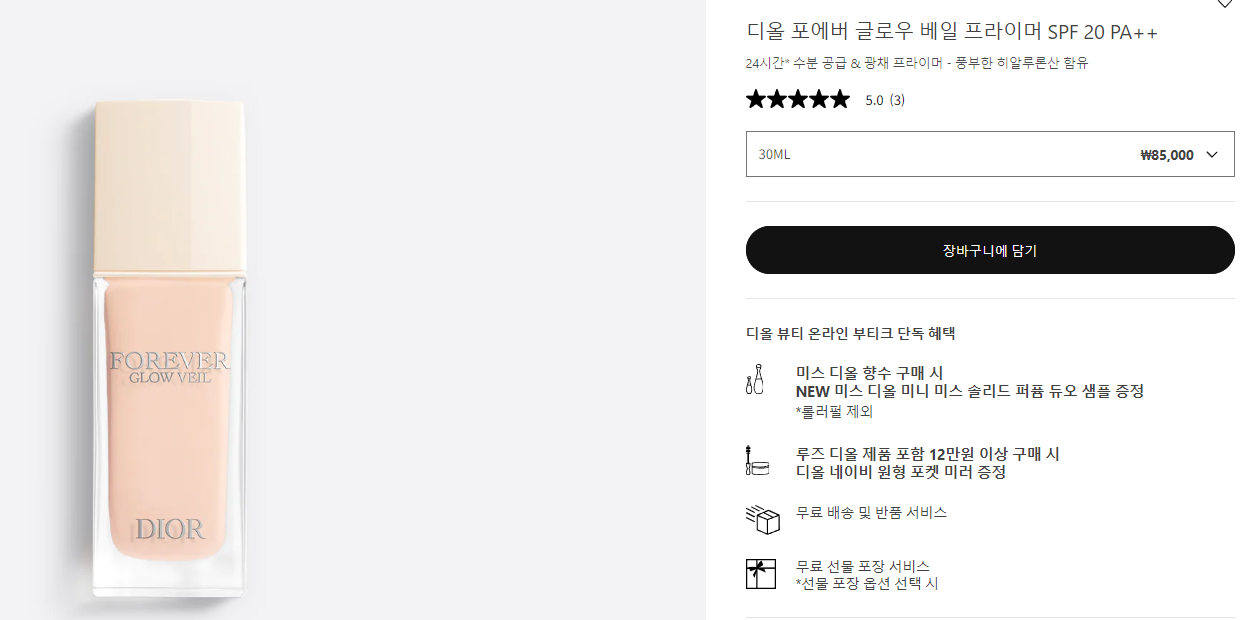 백스테이지 메이크업 아티스트들이 메이크업 첫 단계에 사용하는 필수 아이템인 디올 메이크업 베이스는 피부톤을 균일하게 정돈해 주며 메이크업 지속력을 높여준다. 디올. 포에버 글로우 베일 프라이머는 피부에 24시간* 동안 지속되는 수분감과 SPF 20 PA++의 UVA/UVB 차단 효과를 선사하는 디올의 광채 프라이머이다. 장점은 가볍고 크리미 한 텍스처가 피부를 매끄럽게 정돈해 주고 화사한 광채를 선사하여 하루 종일 결점 없이 빛나는 피부 결을 표현해 준다. 다양한 프라이머를 사용해 보았지만 이 제품이 마음에 드는 이유는 프라이머의 장점을 모두 갖추고 있기 때문이다. 다양한 메이크업을 해보면 기초가 탄탄해야 한다는 점이 정말 중요한데 이 프라이머를 사용해 보면 확실히 화장의 지속시간과 무너짐이 적다. 그리고 답답함이 없다는 느낌이 들고 색조화장 시 발색이 더 잘된다. 무엇보다도  엄선된 성분으로 제작된 포에버 글로우 베일 프라이머는 피부에 편안함을 선사하는 아이리스 추출물과 수분을 공급하는 야생 팬지 추출물, 그리고 피부에 광채를 선사하는 레드 히비스커스 추출물까지 다양한 플로럴 스킨케어 성분을 포함하고 있어 피부 컨디션을 눈에 띄게 개선해 준다. 그리고 히알루론산을 풍부하게 함유한 하이드레이팅 세럼 포뮬러의 디올 포에버 글로우 베일 프라이머는 피부에 뛰어난 수분 공급 효과 및 즉각적인 광채를 나게 하고 피부가 화사해지며 피부 결은 매끄럽게 정돈이 된다. 이렇게 첫 단계가 탄탄하면 메이크업 유지 시간과 발색의 차이가 크다. 반드시 프라이머를 사용하자. 내가 이 제품을 좋아하는 이유는 SPF 20 PA++의 UVA/UVB 차단 효과를 가지고 있어서 조금이나마 자외선의 부담을 덜 수 있다. 디올 페이스 루틴의 첫 번째 단계로 프라이머를 파운데이션 전 단계에 발라주면 한층 더 빛나는 메이크업을 연출할 수 있다.