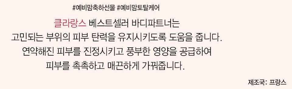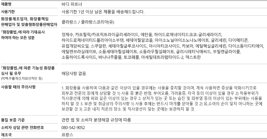 날씨가 선선해지다 이젠 저녁이면 추워지는 요즘손끝이 시리다. 문득 떠오르는 크림이 있어 글을 쓰게 되었다. 클라랑스의 바디파트너라는 크림이다. 임신했을 때도 물론 사용하였지만 그전부터 바디용으로 사용하였다. 가성비 있는 제품이 아니라서 오금과 어깨 쪽 튼살 위주로 발라주던 나의 소중한 크림이다. 발림성이 좋고 향이 은은해서 만족도가 크다.