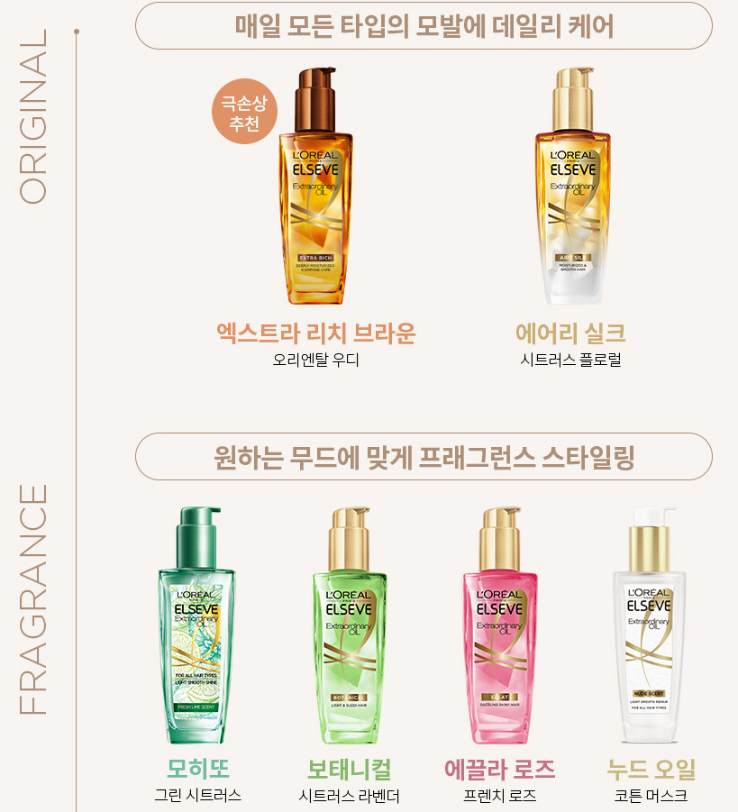 가을은 건조함의 계절이다. 피부나 헤어에서 정전기가 발생하고 거칠어지고 충분한 수분, 보습을 하지 않으면 금방 표가 난다. 겨울 대비 우리 헤어 오일을 하나 알아보자. 워낙 유명한 제품이고 성분이며 후기가 많아서 추천하고 싶다. 요즘 광고계에서 뜨거운 한소희가 광고모델로 활동 하고 직접 사용하는 내용의 인스타를 보면서 나도 쓰고 있지만 새로워 보여서 하나 더 구매해 보았다. 리치브라운 헤어 오일은 이름 그대로의 제품인 것 같다. 헤어 오일의 장점은 머릿결을 부드럽게 해주고 영양을 공급해 주며 윤기가 나서 풍성해 보이는 효과가 있다. 그런데 단점을 꼽자면 끈적임으로 인한 헤어스타일링이 어렵다는 점이다. 그런데 이 부분도 소량을 머리끝에만 살짝 바르면 좋은데 긴 머리와 곱슬머리인 나는 많이 발라버린다. 그런데 이번 제품은 그 끈적임이 현저히 낮고 윤기는 훨씬 좋아졌다. 자연스러운 엔젤링이 그 만족도를 더 높여준다. 상품이 많이 개선된 것 같다. 꼭 사용해 보길 권한다. 그리고 향이 고급스럽다. 표현이 맞을진 모르지만 풍부하고 그윽하다. 성분 자체도 믿을만하고 10년 동안 사랑받은제품이니 믿고 사용해 보자.